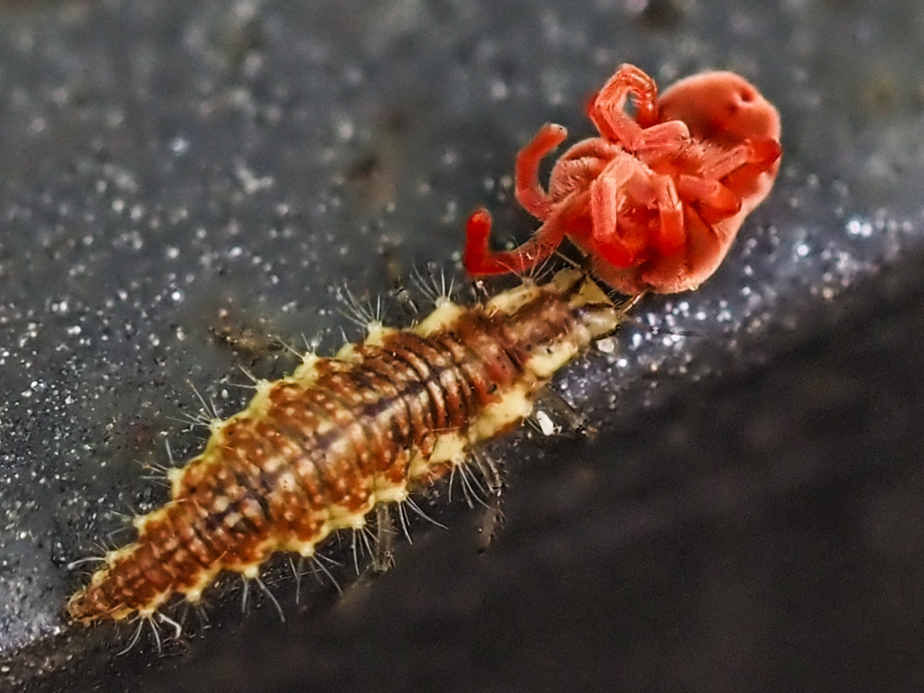 Die Larve frisst Blattläuse. Überwinternde Florfliegen verfärben sich gelbbraun und werden im Frühjahr wieder grün.