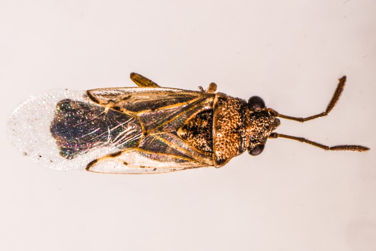 Familie: Lygaeidae (Bodenwanzen), Gattung: Nysius; die sichere Bestimmung ist zum Teil nur durch DNA-Analyse möglich.