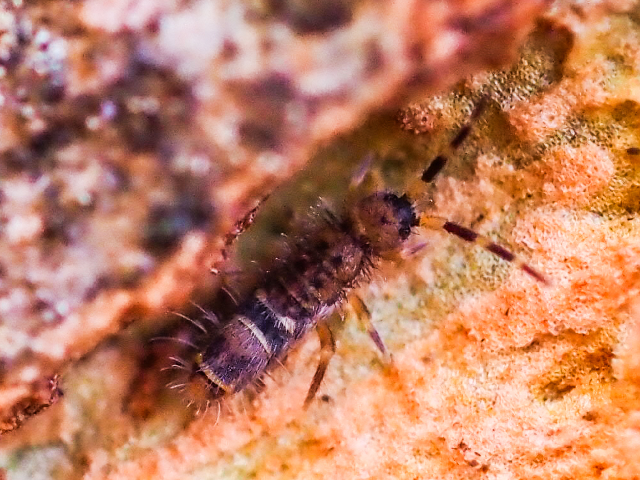 Familie Orchesellidae. Der Gegürtelte Springschwanz gehört in Mitteleuropa zu den häufigsten und größten Springschwänzen.