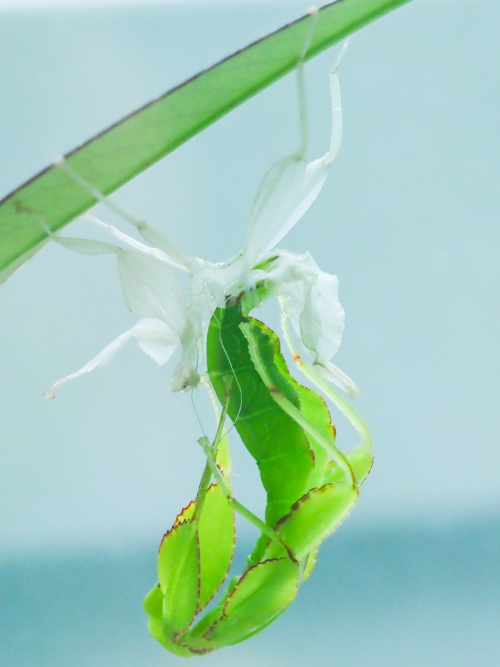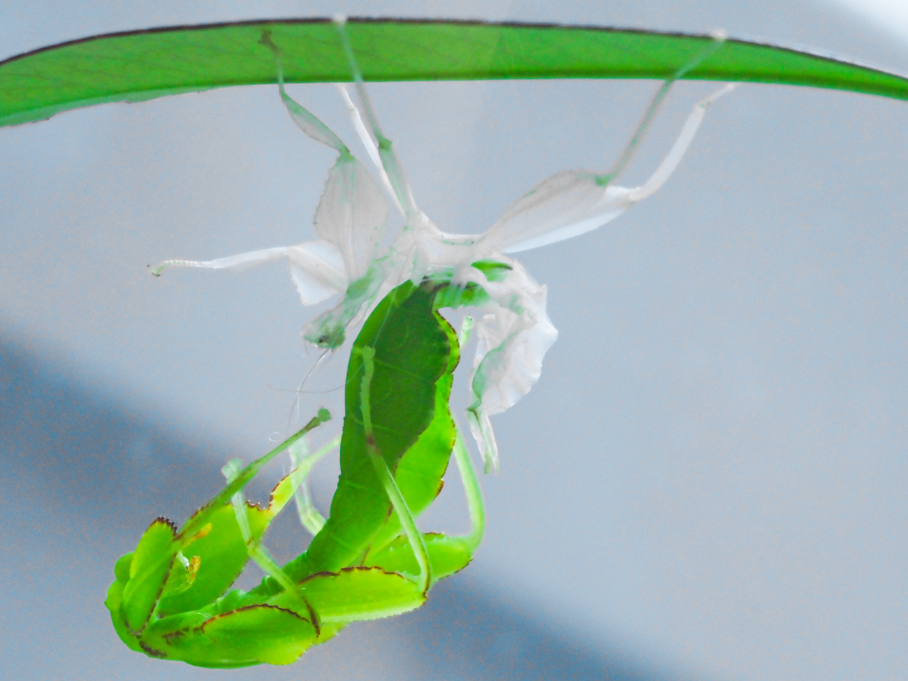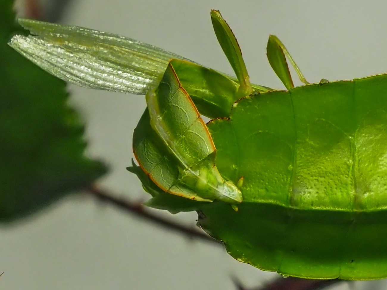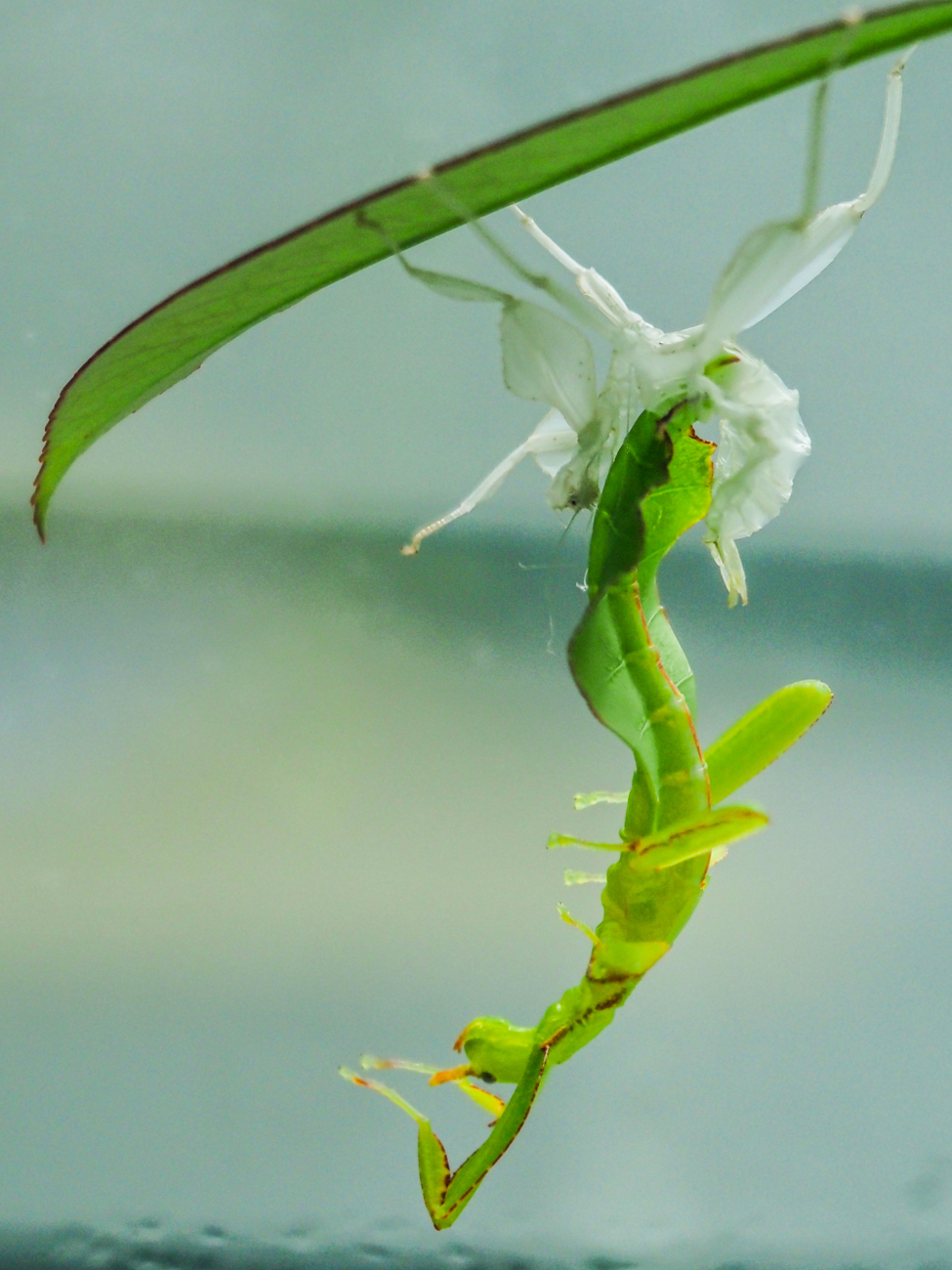 Ursprünglich Philippinen, heute verbreitet als "Haustiere", da sie sich gut züchten lassen. Lebensdauer 4 bis 6 Monate. Bevorzugen Temperaturen von 22 - 27 °C und Luftfeuchtigkeit 60 bis 80 %. Futterpflanze hauptsächlich Brombeerblätter. Verschiedene Fotos auch von Häutung. Die Tiere fressen nach der Häutung ihre Haut, die Beinhäute lassen sie aber vielfach liegen. Foto 18 - 20: Haut nach der Häutung von Fussgelenk und Kniegelenk. Jedes kleinste Härchen häutet sich. Foto 21 und 22: Weibchen, paarungsbereit, mit werbenden Männchen, 3.12.2025; Foto 23 - 25: Mundwerkzeuge des Weibchens (kurze Fühler), damit können sie auch leicht verholzte Brombeerstängel mit den Stacheln fressen; Foto 26 - 28: Männchen mit langen Fühlern; Foto 29 - 32: Kopula (Paarung); Foto 33: Körper-Hinterteile Männchen; Foto 34 und 35: Körper-Hinterteil Weibchen.